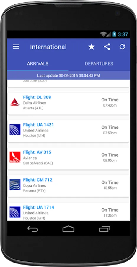 The application only shows the flights for the current day (12:00 AM - 11: 59 PM)