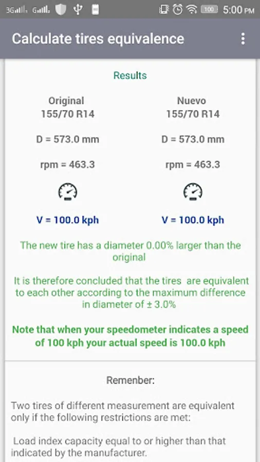 This application tries to give a contribution to help make a better decision based on the calculation of the equivalence of two mixed tires but having a diameter quite similar accepting a tolerance of difference of + -3%.