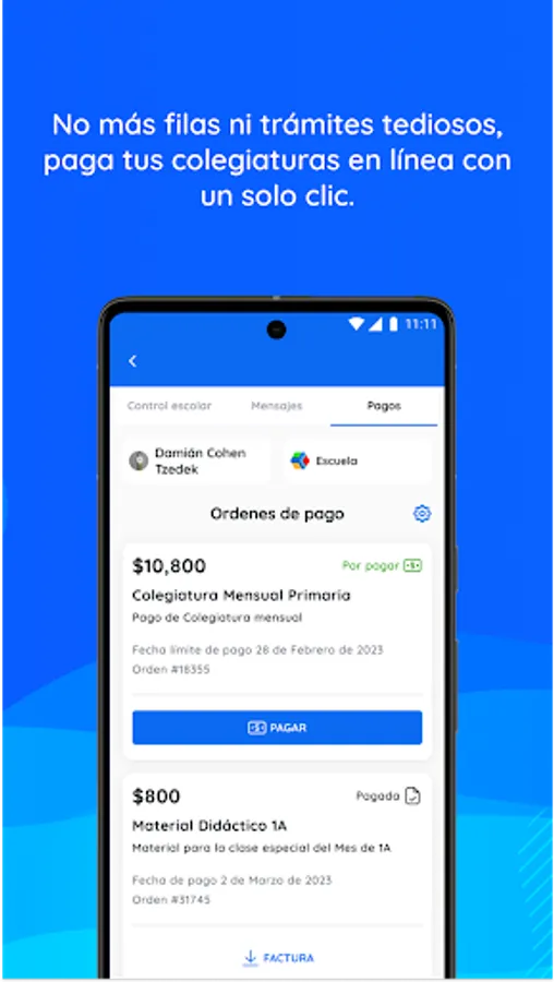 → Payments: Scholarship pay, school materials, uniforms and other school fees. Add your credit or debit cards, generate invoices or download credit notes.