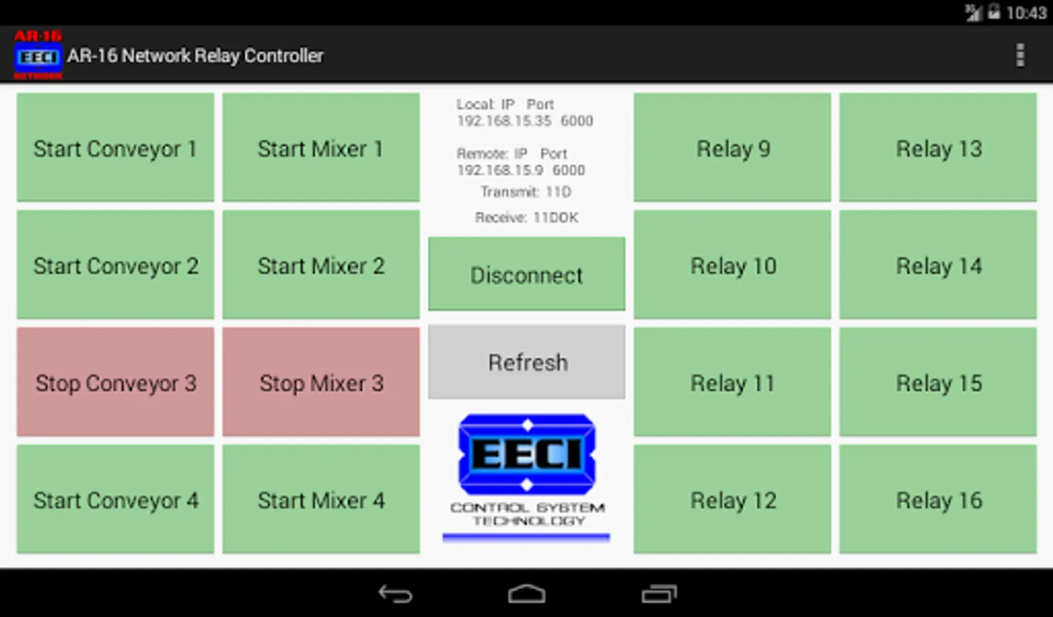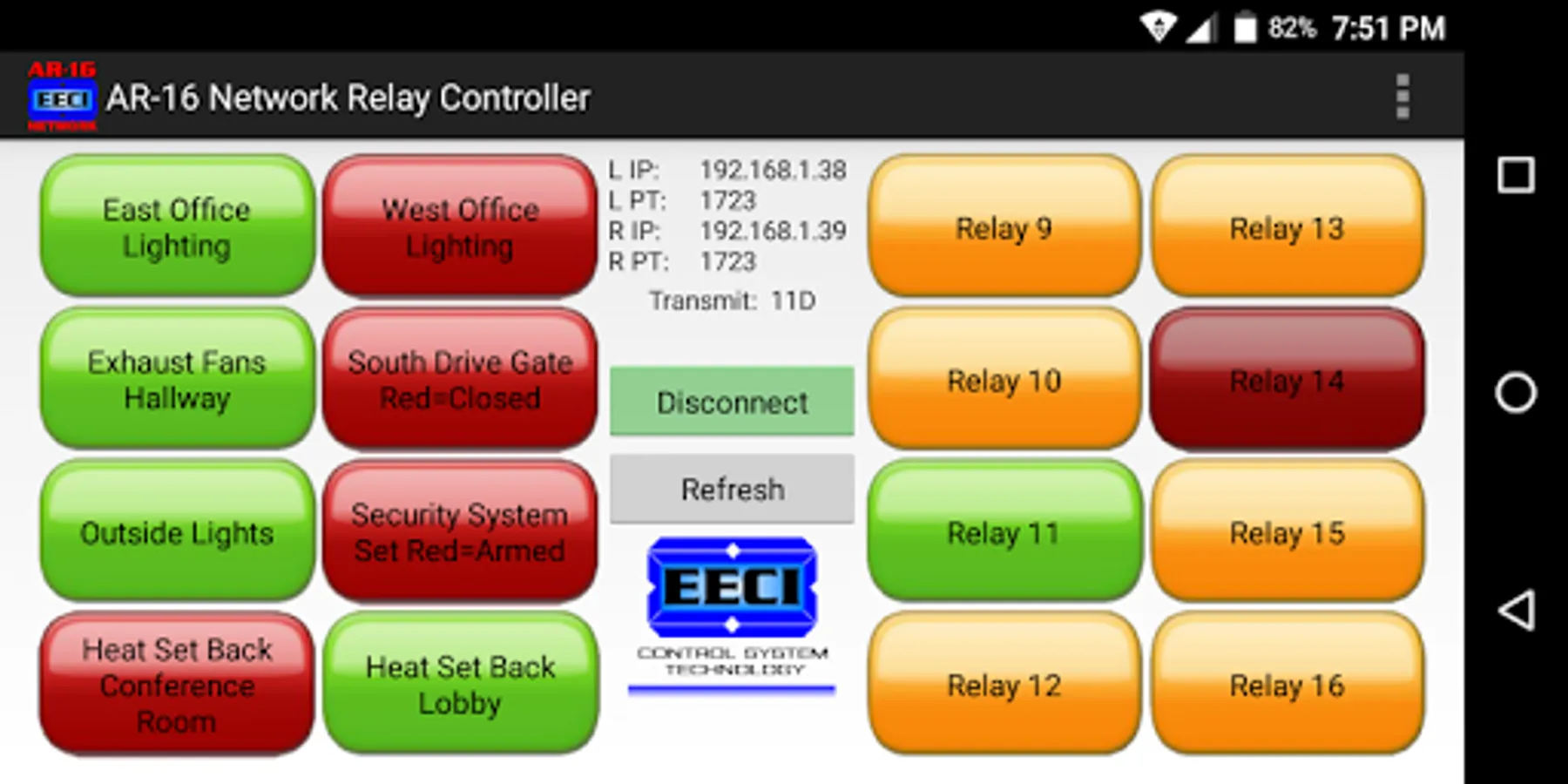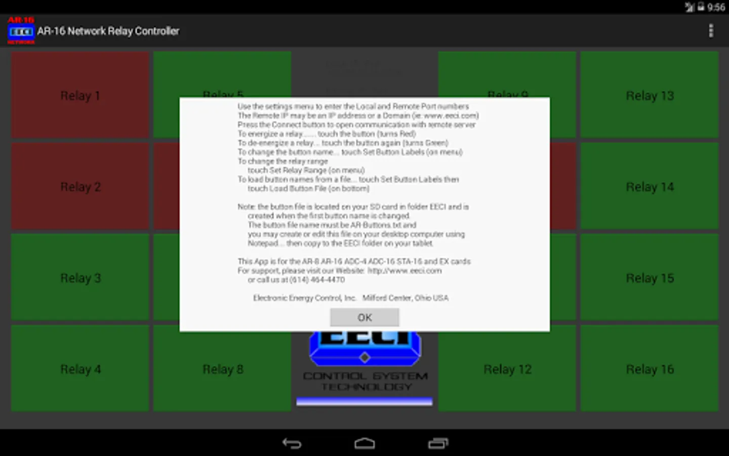 The AR-16 Network Relay Controller App may also be used to remotely control relays used with EECI's ADC-16 Analog to Digital or the STA-16 Contact Monitor. Please visit www.eeci.com for more information.