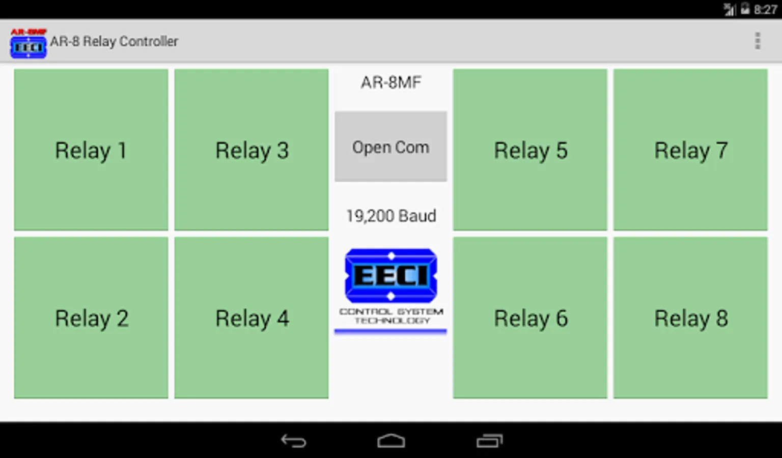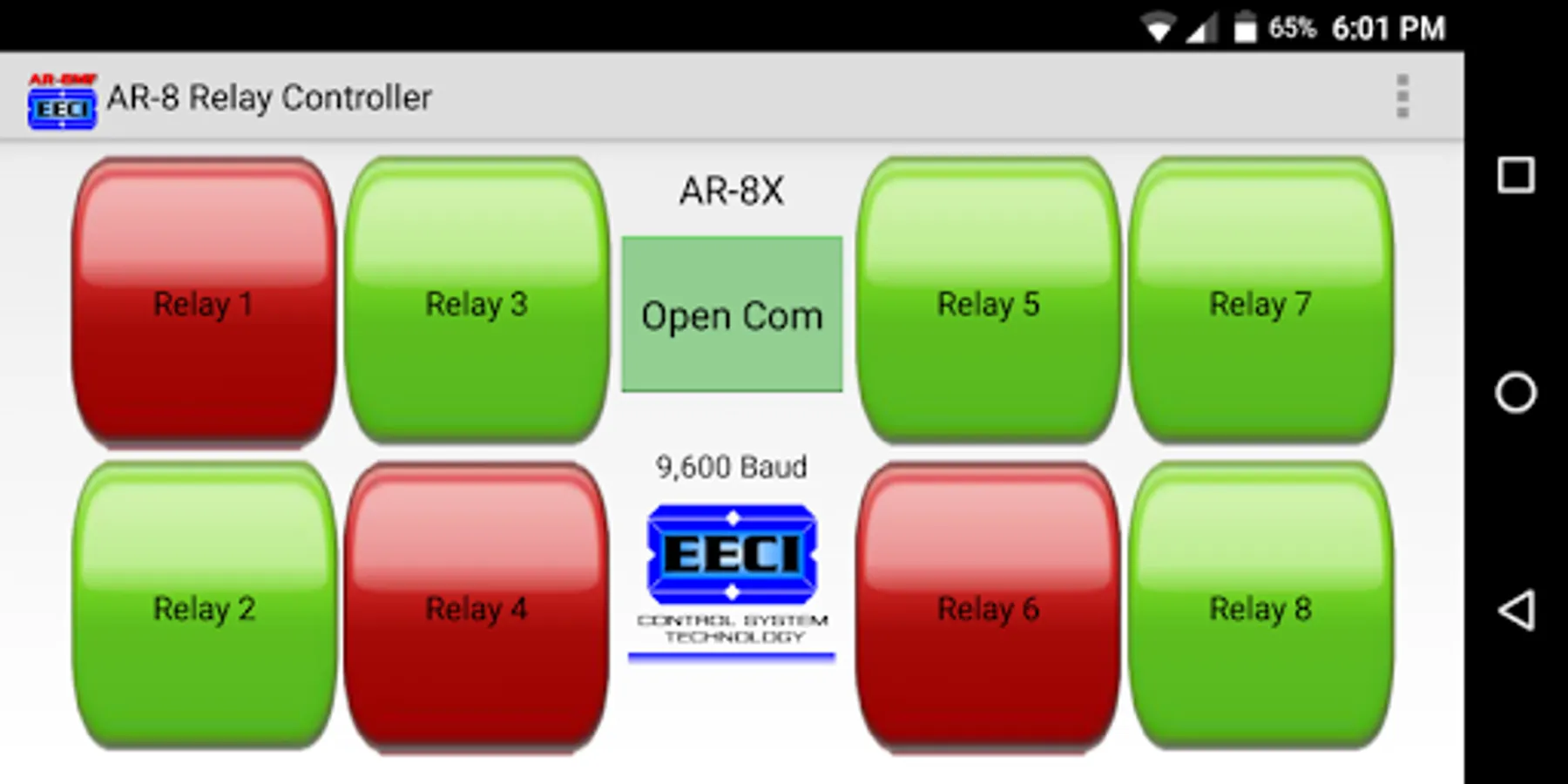 The AR-8 Relay Controller App has been developed to run on Android operating systems Android 3.2 up to 11 which includes Honeycomb, Ice Cream Sandwich, Jelly Bean, KitKat, Lollipop, Marshmallow, Nougat, Oreo, Pie, Q and Red Velvet Cake. Root permission or special driver not needed for most Android phones and tablets that use the Android operating system 3.2 or higher (Honeycomb and up), just enable USB Host Mode*. Free telephone support is provided for this app by contacting EECI® Support at (937) 349-6000.