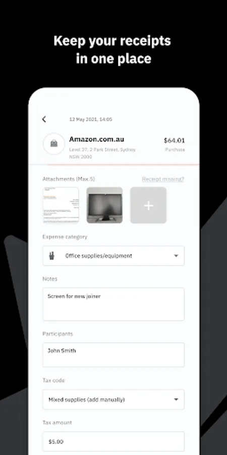 • Attach images of receipts for expenses