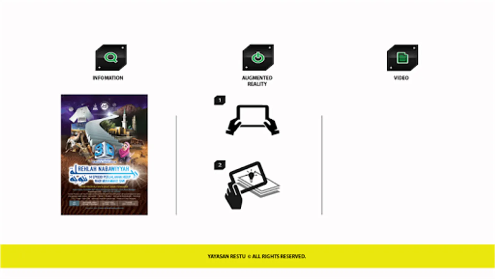 Infomation app for Yayasan Restu. App features Augmented Reality scanner.