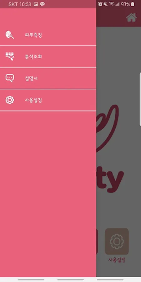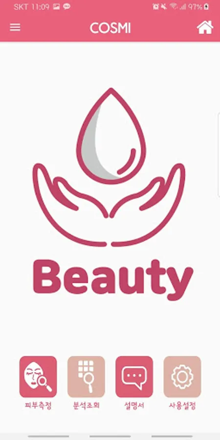 The camera part measures skin by interfacing with a beauty device and a webcam.