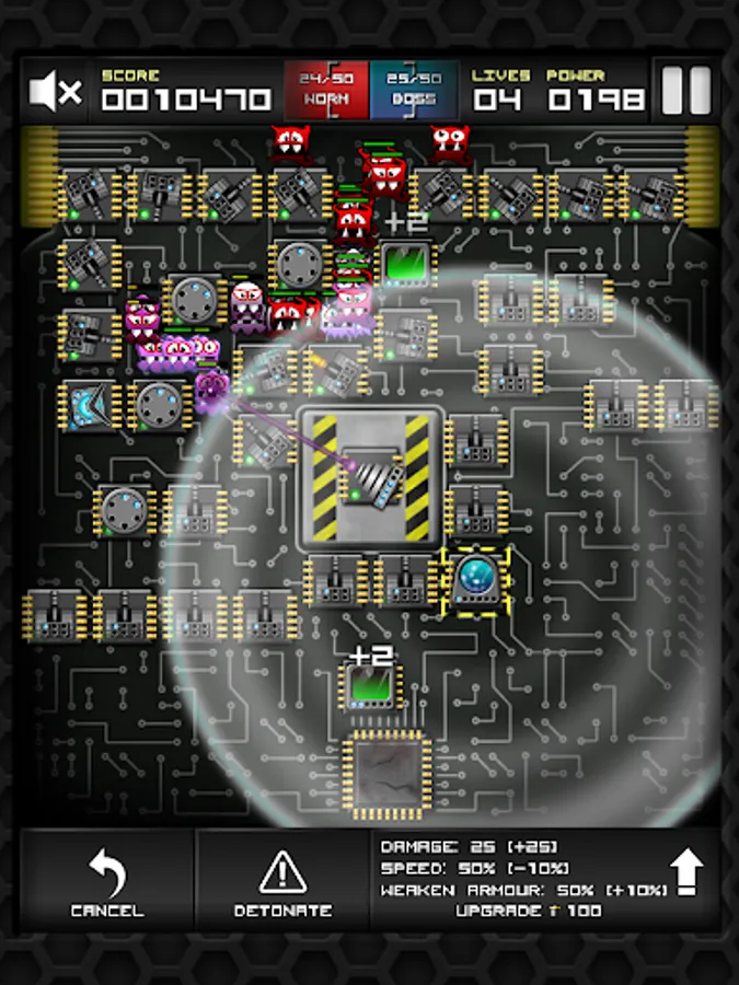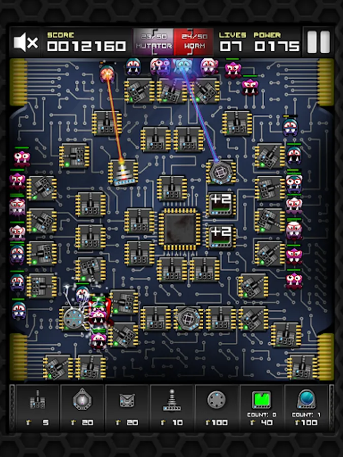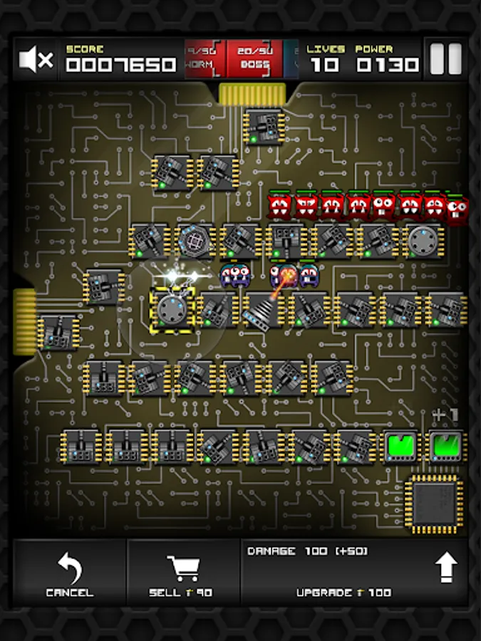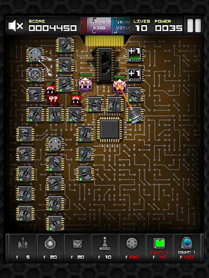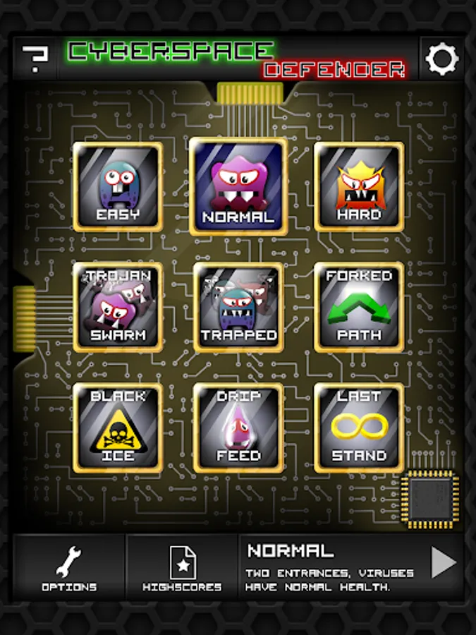 Cyberspace Defender is an "arena" style tower defense game in which you battle to prevent your Android device from being overwhelmed by malware. Viruses, trojans, worms and all manner of other infections must be stopped from reaching your CPU by deploying a maze of various types of antivirus towers.