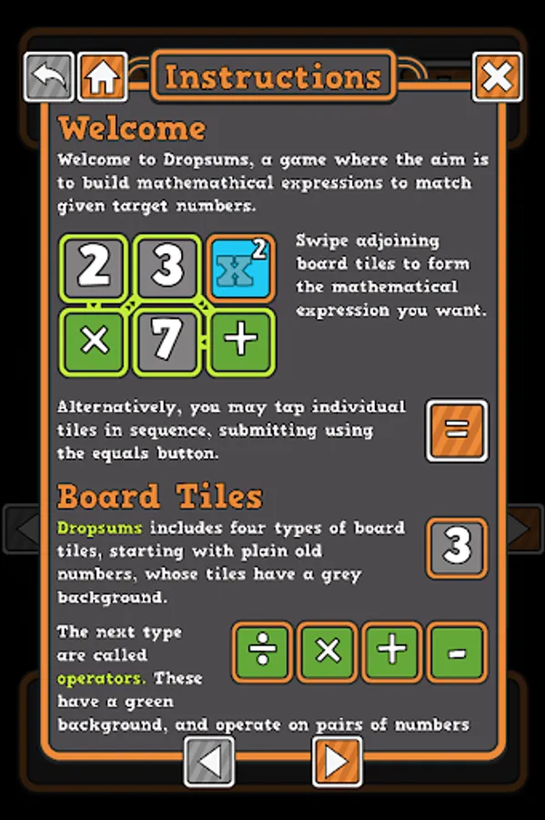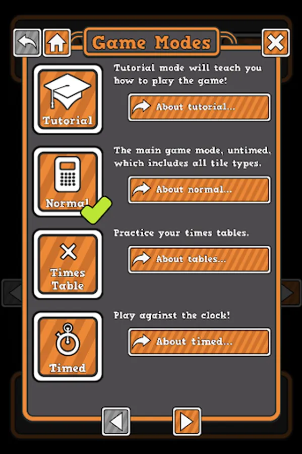 The game is also designed to benefit 7 to 11 year-olds (2nd grade to 5th grade in the U.S., Key Stage 2 in the U.K.) by supporting learning about mathematical expressions, the order of mathematical operations (as embodied in the BODMAS acronym), and simple algebra. There's also a game mode for practising times tables.