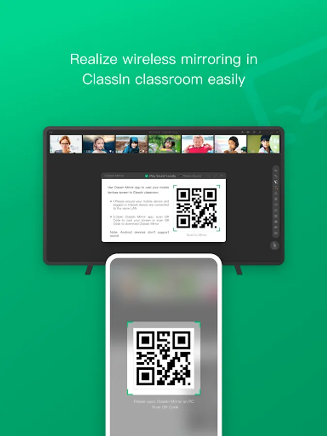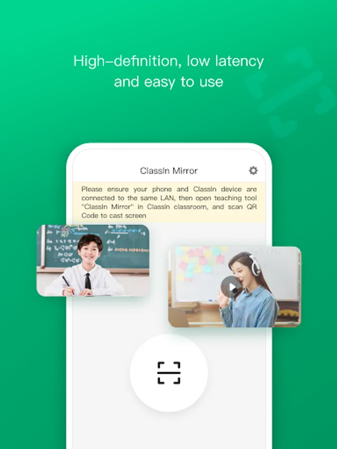 ClassIn Mirror is a simple and easy-to-use projection screen application. This application should be used with ClassIn online interactive classroom software. ClassIn Mirror can easily achieve one-click screen cast effect by casting your screen into the ClassIn online classrooms. ClassIn Mirror will support for online teaching scenarios preferably, such as Children English, K12, international, training for study abroad ,quality-oriented and vocational, etc.