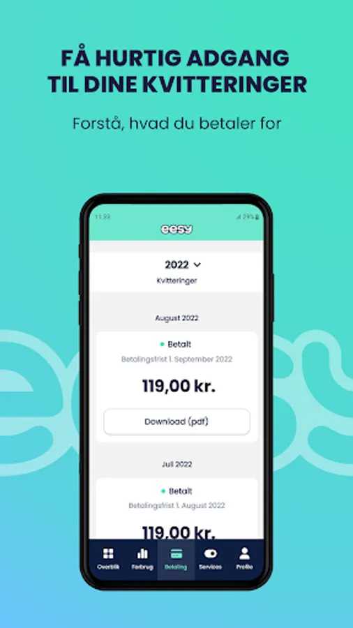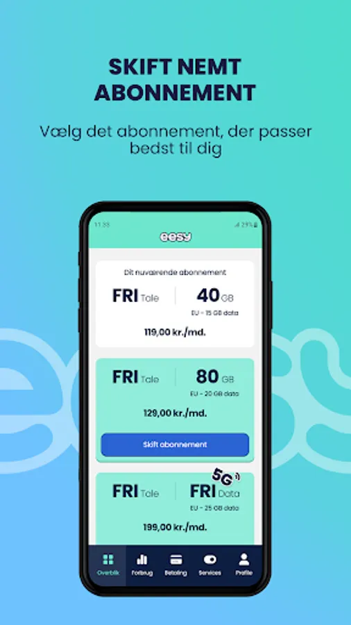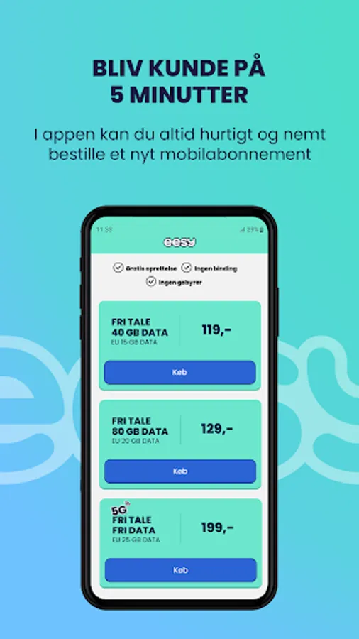 In the eesy app you can easily and quickly buy a mobile subscription, but it is also the fastest way to find information about your subscription, consumption and receipts as well as services to easily take control of your mobile subscription. As an eesy customer, you log in with a code the first time, and then with your fingerprint for quick access. We think that's pretty easy ourselves.
