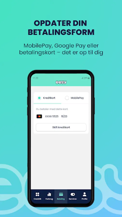 - Update payment method (Choose MobilePay or payment card – it's up to you).