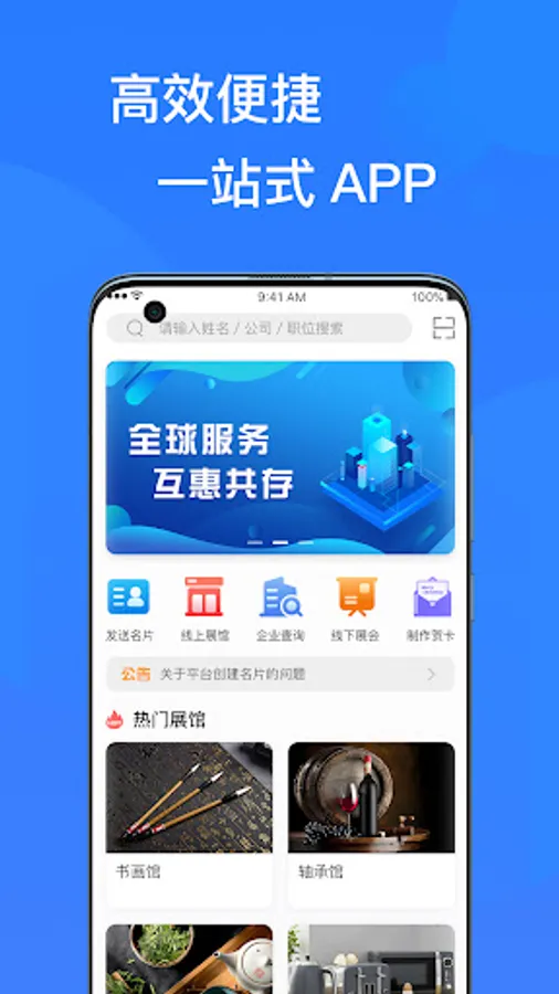 Publish exhibitions, participate online, and manage your own company, products and business cards.