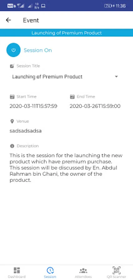 ✔️ Session of the event - Change the session to check in which guest registered of the session