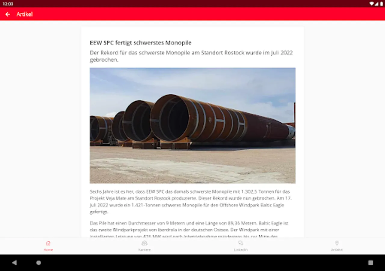 With NEEWS, partners, employees, customers and interested parties have access to the latest company news, career opportunities, the applicant portal and information about the EEW Group, its products and worldwide locations anytime and anywhere. Find out in the trade fair calendar where you can meet the EEW Group for a personal exchange. If you want to visit or contact any of our worldwide locations, the app offers you