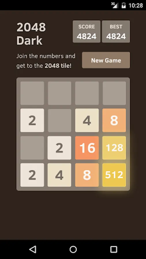 You can play 2048 dark game by joining tiles with the same numbers to convert them to another tile which has a value as the sum of the tiles joined (ie. 2+2=4, 4+4=8, 8+8=16 ..) Your aim in the game is to reach a 2048 tile by joining two 1024 tiles. When you reach 2048 you win the game but you can choose to continue for higher points.