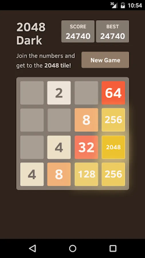 2048 Dark is a dark themed version of the classical 2048 puzzle game.