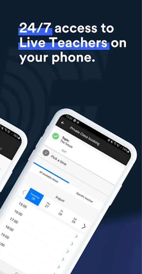 EF English Live is the world’s most popular English language school for learners who are serious about progress. A complete school, delivered from the cloud, with structured curriculum, tailored courses, and of course teachers, now available on your phone. Helping millions of students and thousands of companies around the world achieve their English language learning goals, the EF English Live school really is the only choice for learners who are serious about improving their English language skills. And now with a dedicated smartphone app, students really can study anywhere and at anytime, even without access to the internet (offline mode support).