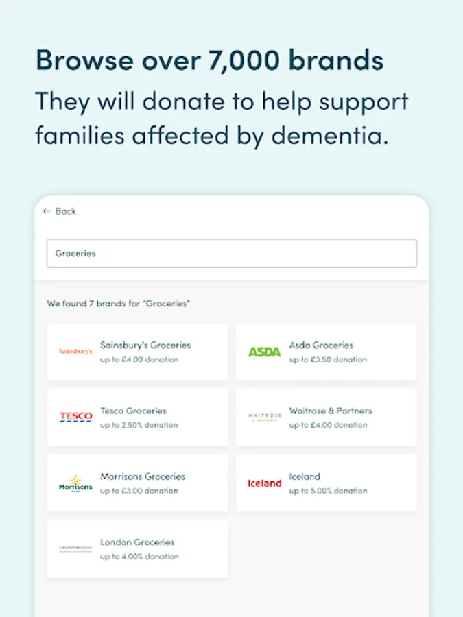 The Dementia UK: Shop and Raise app turns your online shopping into free donations to help families affected by dementia.