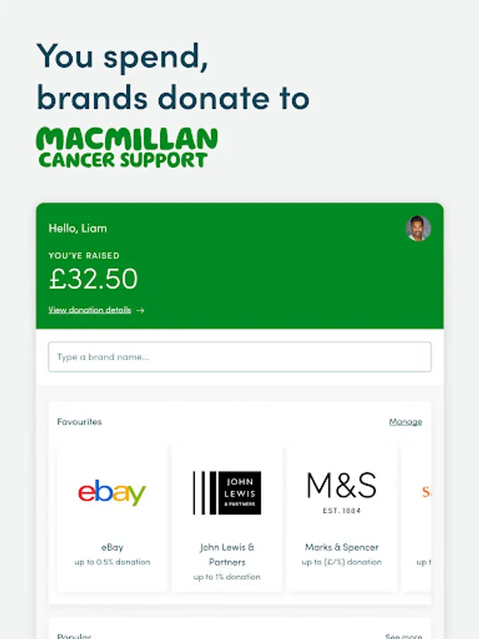 The easyfundraising for Macmillan Cancer Support app turns your online shopping into free donations to help people living with cancer.