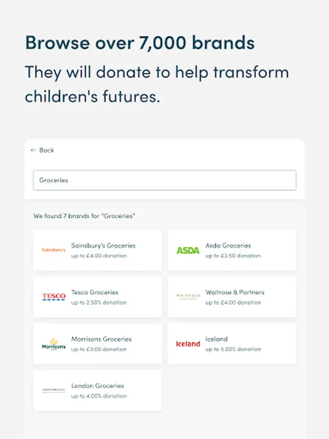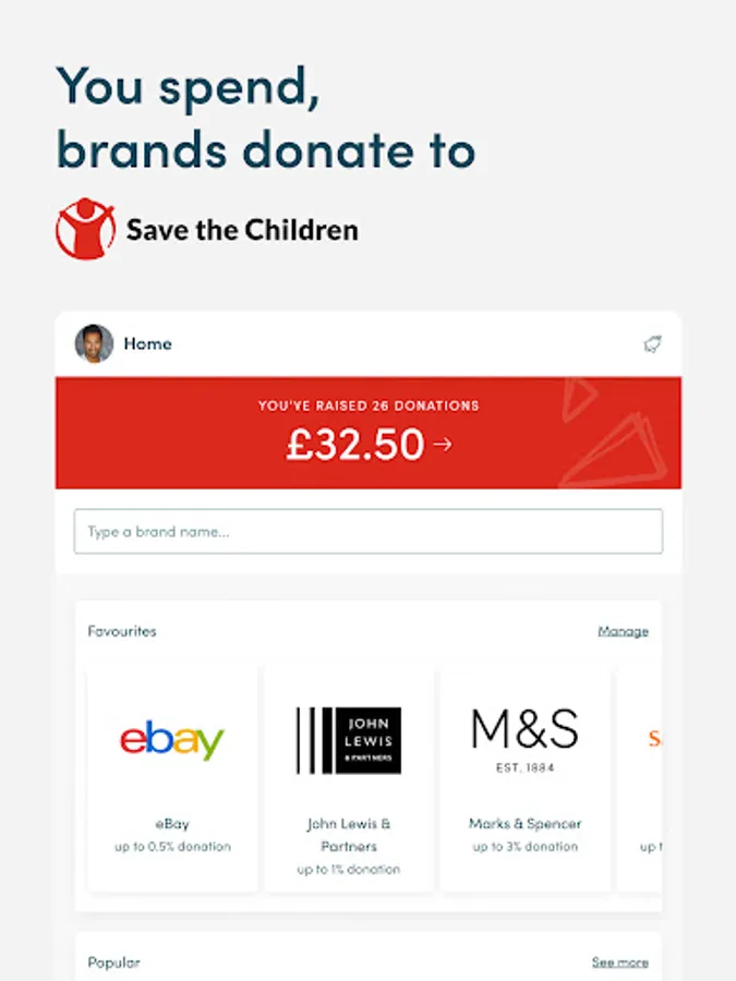 Over 7,000 well-known brands will donate a percentage of what you spend with them to Save the Children. Your shop won't cost you any extra! The cost is covered by the brand.