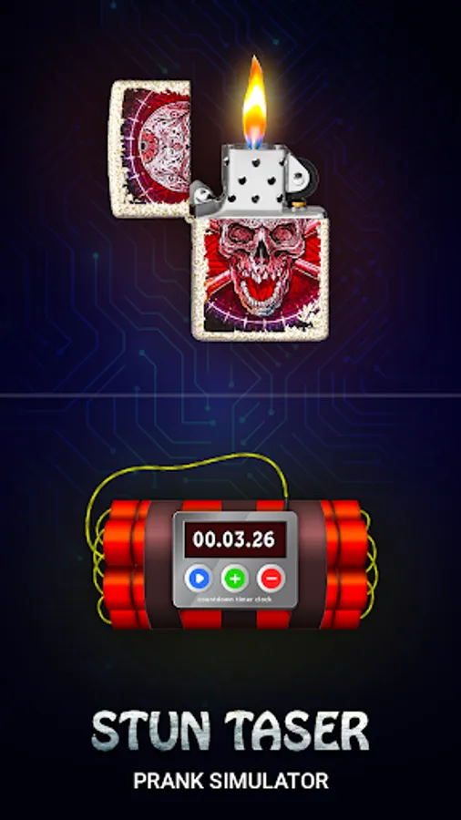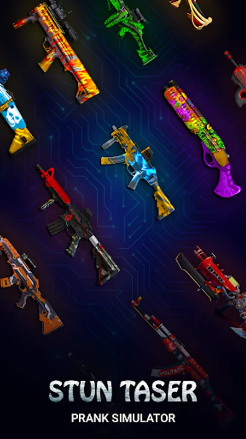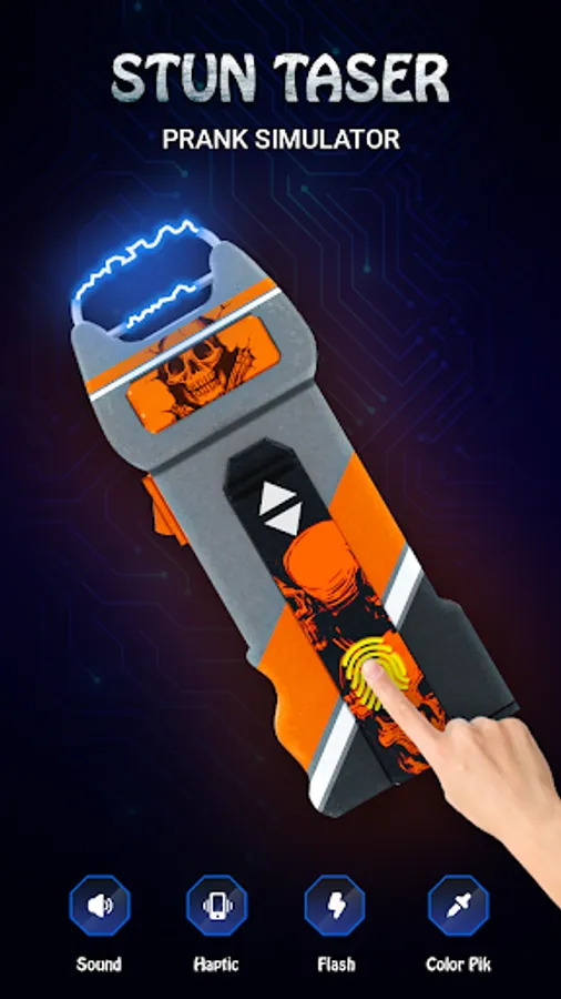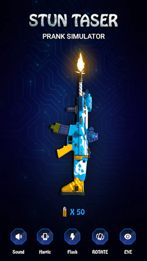 - Stun 3D gun simulation graphics with flashing screen effects.