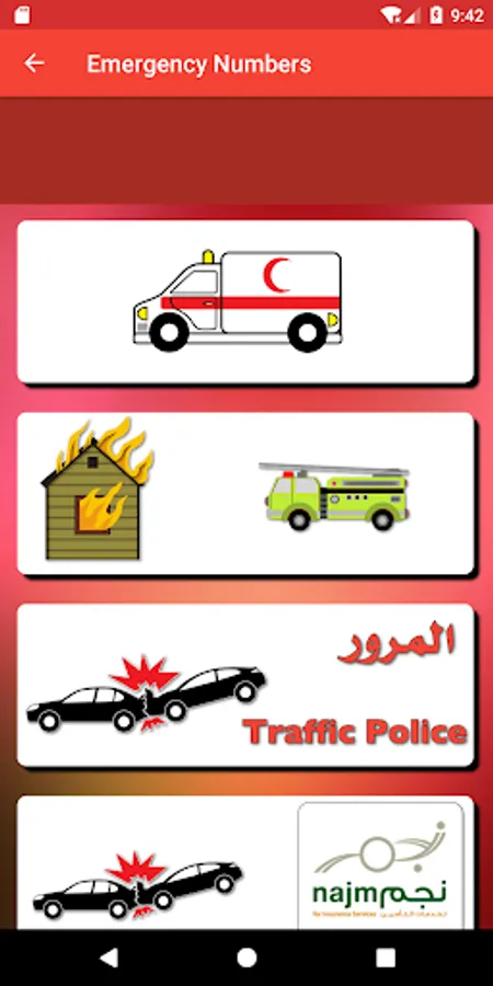 No need to know the emergency phone numbers in Saudi Arabia this app will provide the numbers for :