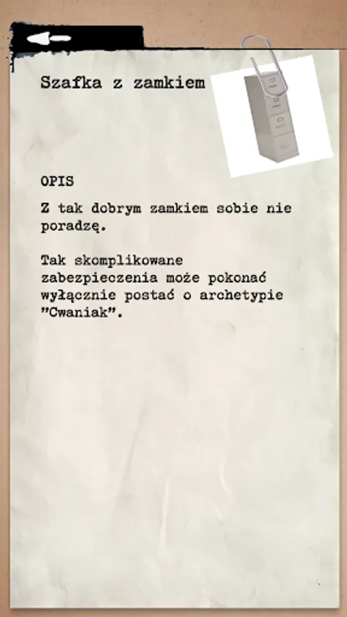 We have created an unusual combination of the concept of escape room (room puzzles, from which the user must release) game type LARP (ang. Live action role-playing game - a variety of role-playing game played live). On the one hand, the game is full of puzzles, challenges or interesting activity, and on the other hand, is based on a scenario involving feature, which is played out the role play.
