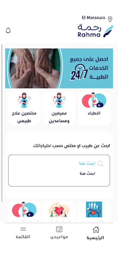 The first and leading application in medical mediation to serve the elderly and people with special needs in the Kingdom, allowing them to search for doctors and health practitioners registered in the application and book an appointment, whether through a home visit, a voice call or a video call with certain fees that are determined by the service provider or health practitioner.