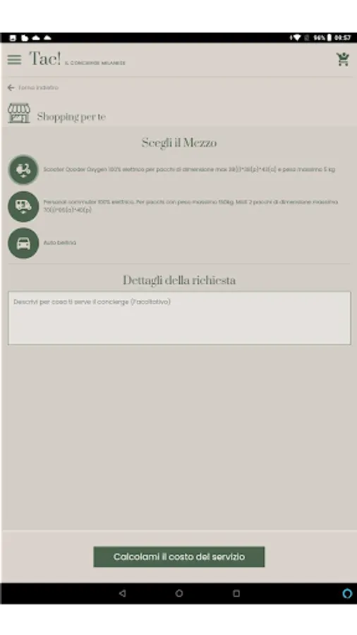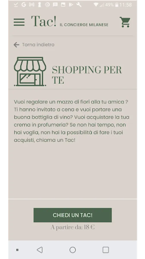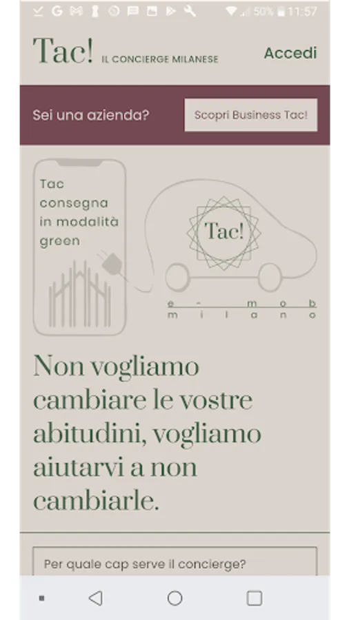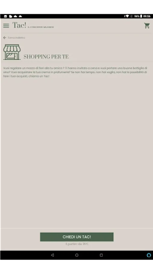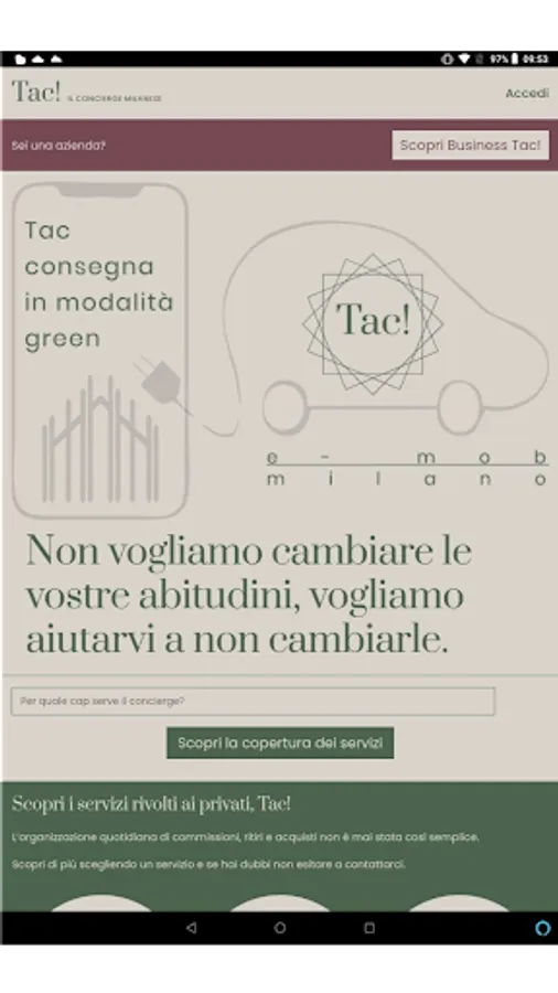 Tac! offers a service aimed at simplifying the way to manage daily errands, deliveries, tasks and everything that, especially in large cities, can be a source of general difficulty or take time away. In short, a personal concierge who carries out everything we can delegate on your behalf, because each concierge is dedicated to providing a tailor-made, highly professional and qualified service capable of establishing that relationship of trust that will make the "Call a Tac" a pleasant and indispensable habit.