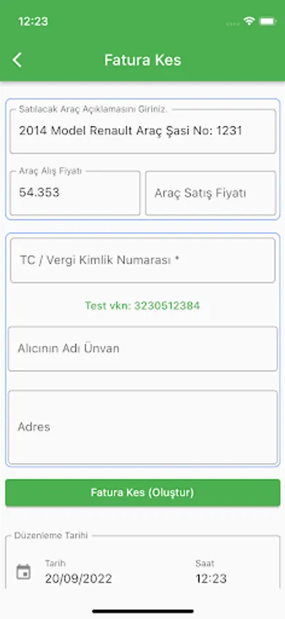 - If the person purchasing the vehicle is not an e-Invoice payer, the application automatically issues an e-Archive invoice to this person.