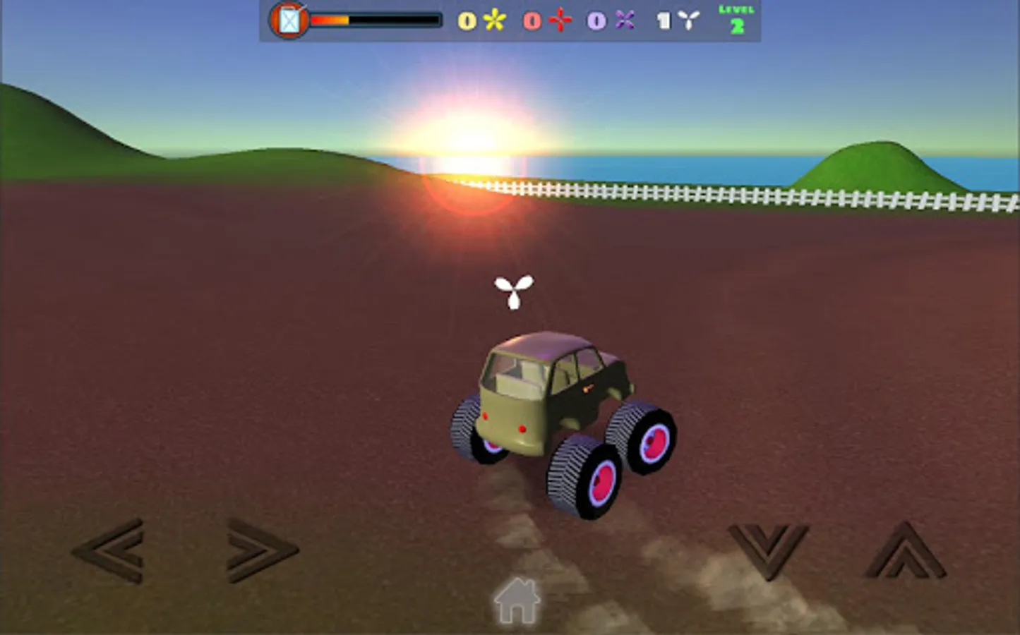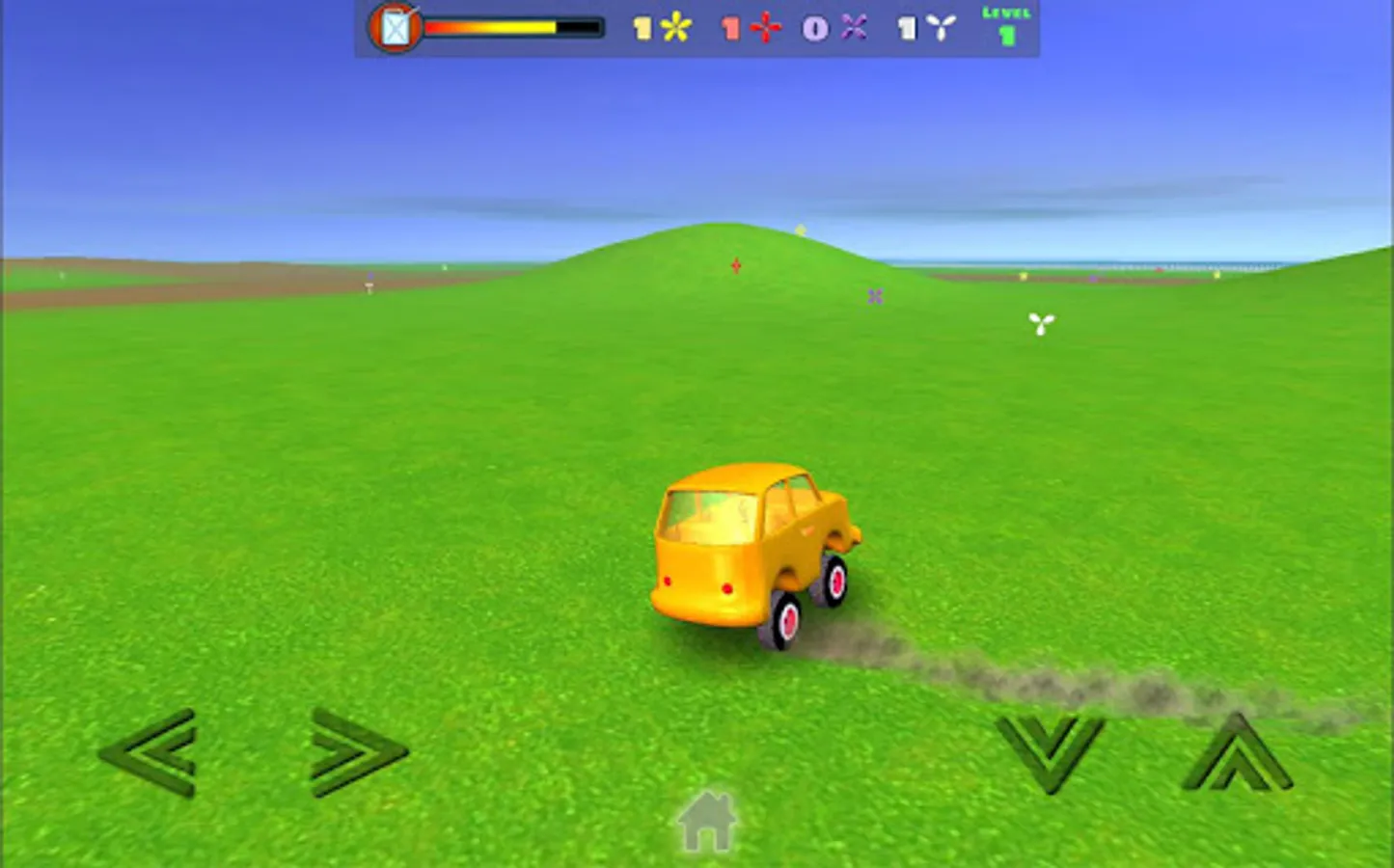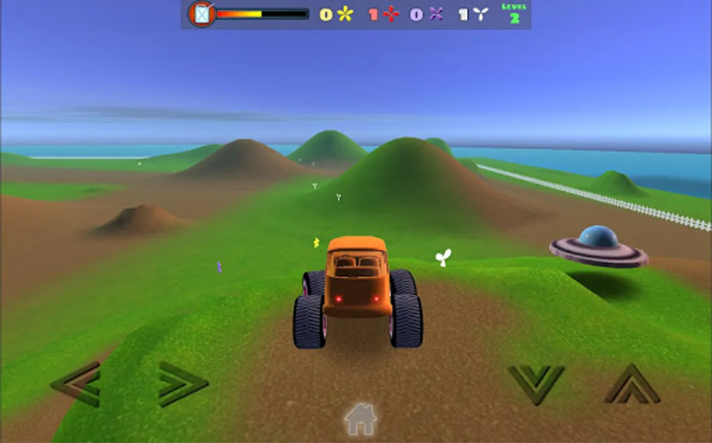 Driving a little car where you have to escape from a UFO while flowers together to pass the level.