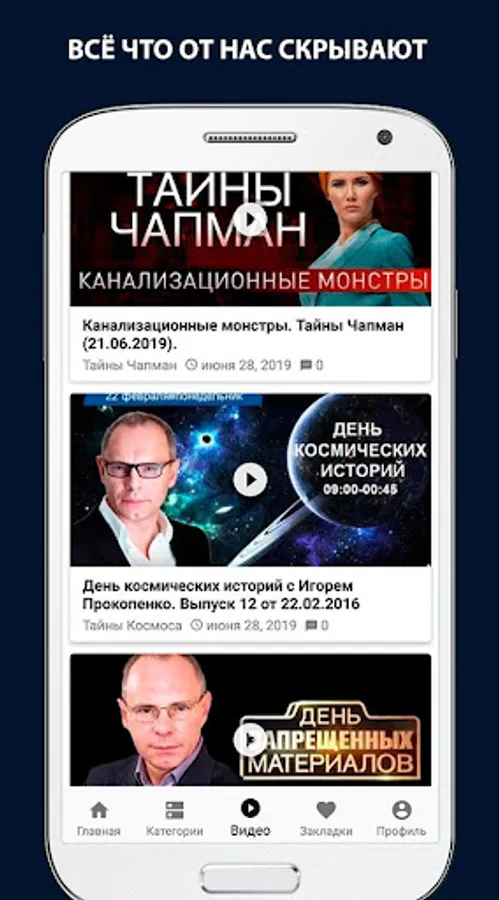 The X-Files app is a collection of movies and broadcasts. This includes all the most popular programs. Movies are conveniently divided into categories. For your convenience, there is a bookmark feature where you can put aside your favorite and interesting movies for quick access.