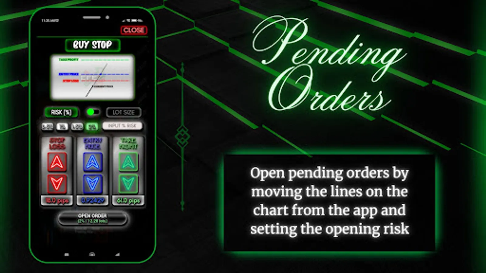 ✅ Move the lines on the chart, set the risk and open pending orders easily