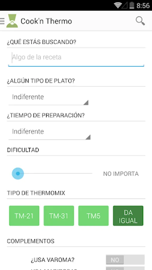 Disclaimer: The Cook'n Thermo application does not offer products or services of any kind or maintain a business relationship with VORWERK SPAIN MANAGEMENT, SL owner of the intellectual property rights over the trademark "THERMOMIX".