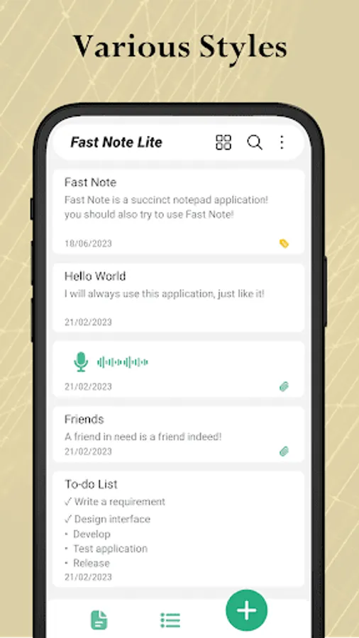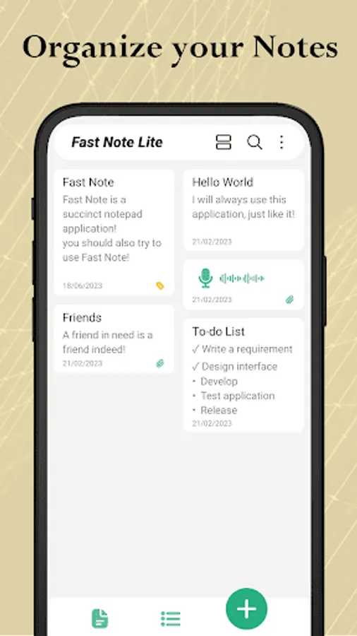 Fast Note Lite offers different ways to take notes and capture your thoughts. You can also attach photos or files to your notes for easy reference.
