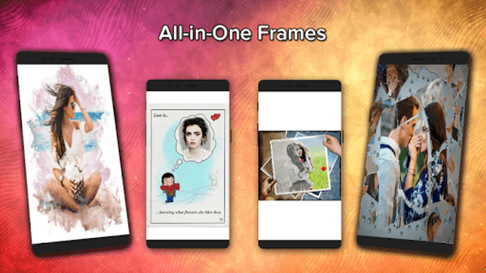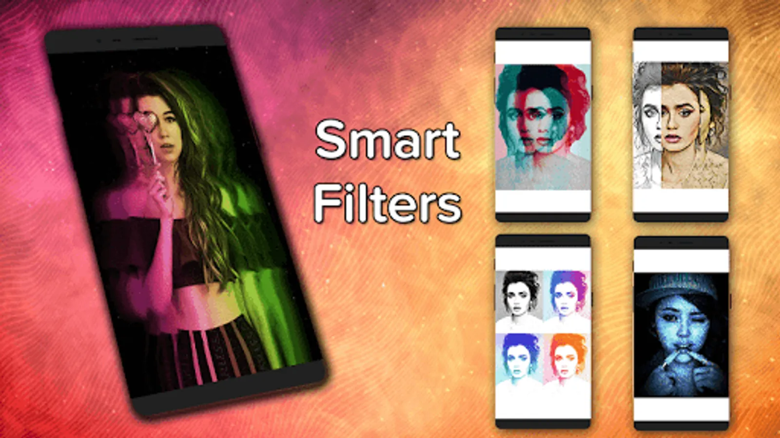 Apps having 50+ main categories like: Magic Effects, Double Exposures - Blending Effect, Monsters Face Effect, Cartoon Photo, Smart Filters, Sketches & Paintings, Blur Effects, All-in-One Unique Arts, Funny Emotions, Face Makeup, Art Effect, Amazing Art Background, Drawing & Masking, Face Montages, GIF Animations, Magazine Covers, Funny Faces, Human Vs Animal, Coloring Filters, Face Stickers, Sketch Art Photo, GIF Photo Effect, All-in-One Frames, Unique Art, Make your Money, Insta Color Filter, Overlays, Flags on Face, Celebrity Posters, Stylish Effects, Zodiac Signs, Head Stickers, Frames, Shattering Effect.