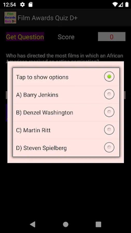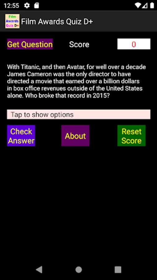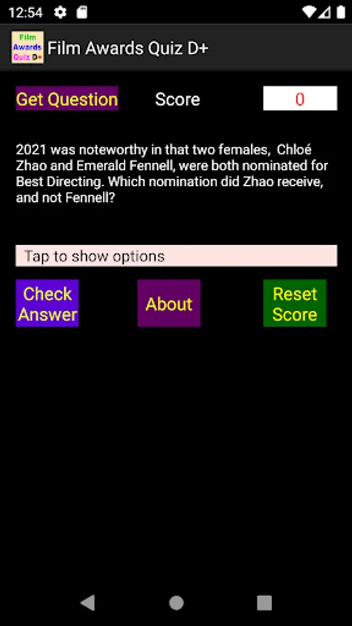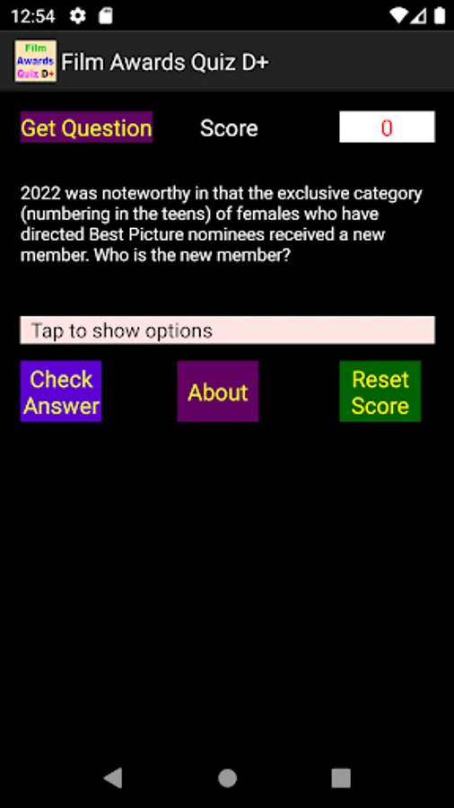 You gain two points for each correct answer, and lose one point for each incorrect answer. There is no penalty for skipping a question. Just tap Get Question again to display a different question. Since the questions cover the Oscar nominees from 1929 through the present day, they can be fun and challenging as they may cover recent nominees or ones from decades ago.