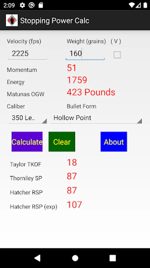 A United States Concealed Carry Association blog review app is posted at https://www.usconcealedcarry.com/blog/effective-firearms-stopping-power-calculator-smartphone-app/.