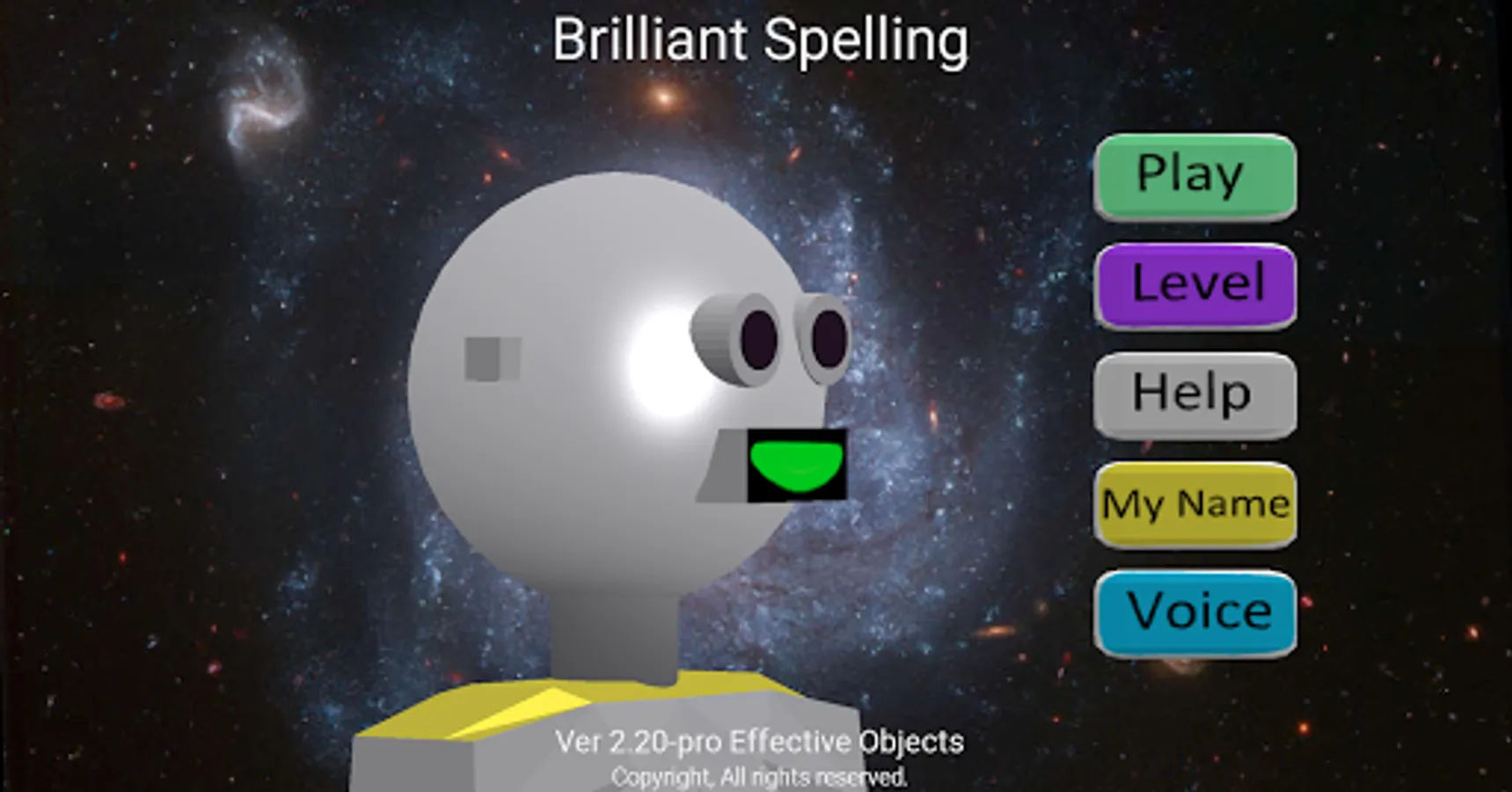 Brilliant Spelling is a fun game with a friendly speaking robot to guide you through spelling lessons. Advance through the levels as you increase your knowledge.