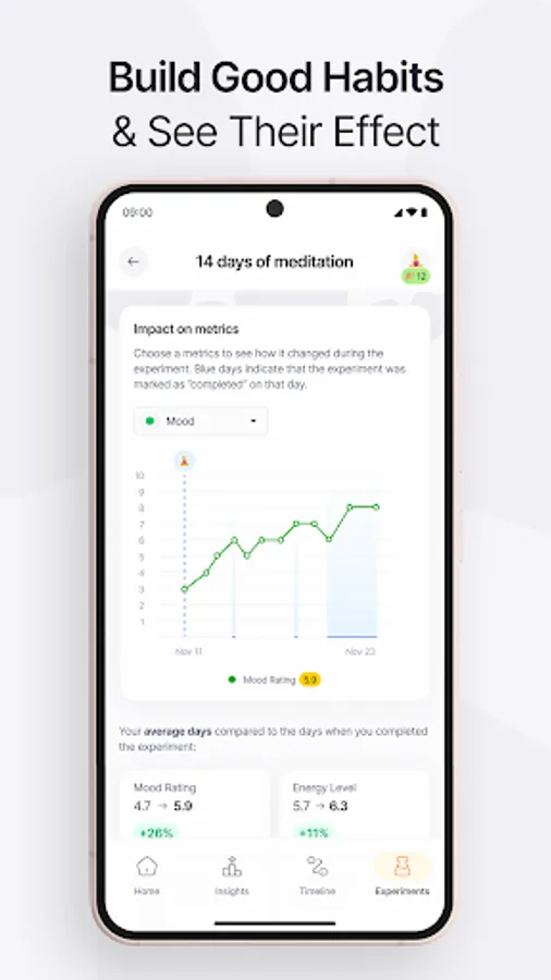 Effecto’s data-driven approach puts you squarely in the driver's seat, giving you all you need to reverse engineer your life and build it back on your terms. It is like your therapy buddy which currently supports 200+ chronic conditions. However, you can limitlessly track, analyze, and optimize any factors in your life.