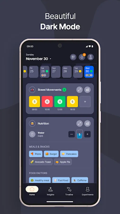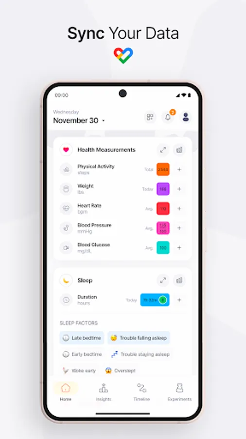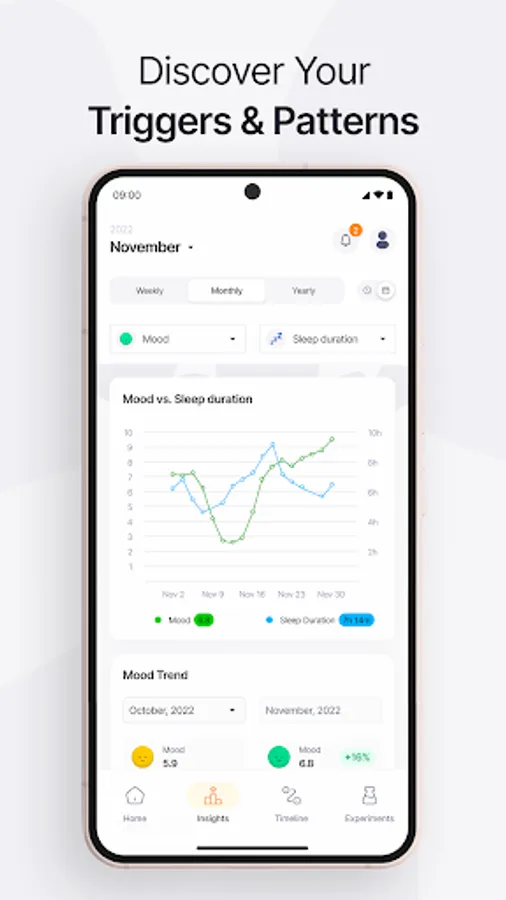 Every factor you track gets an insights page. In each insights page, you can access the factor's statistics, make comparisons over time, and see correlations between factors.