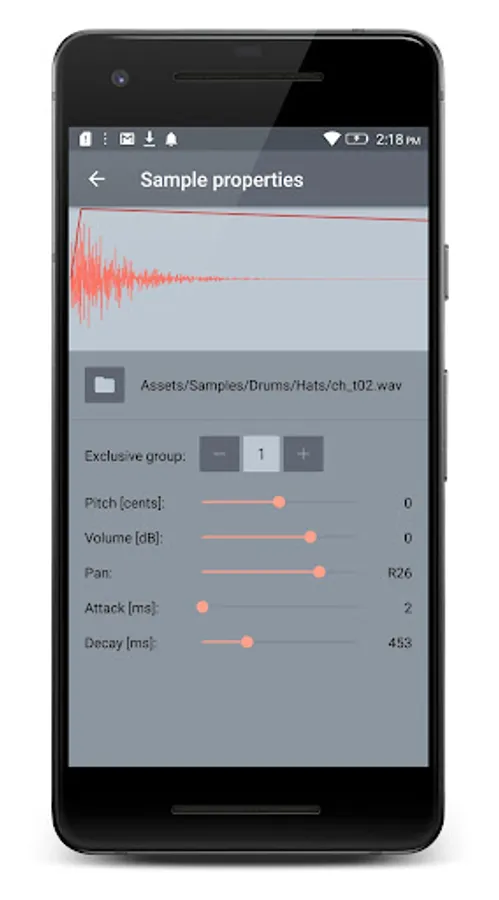 - Fine tuning sample parameters (volume, panning, pitch, attack and decay)