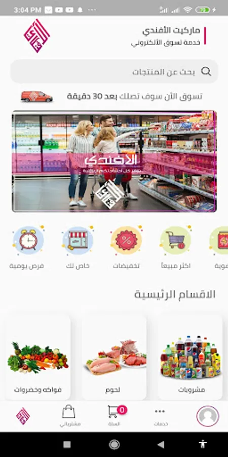 Online shopping in all Iraqi governorates and delivered to predetermined places through partners in the available governorates.