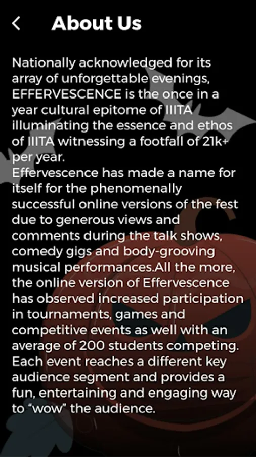EFFERVESCENCE (fondly nicknamed EFFE) is the annual cultural festival of IIIT Allahabad and it’s the second largest college fest in Uttar Pradesh and well renowned in India. Generally held in October, it attracts national as well as international participation in its multiple events during the fest. It is committed to creating an unforgettable experience for all its visitors, along with providing people from different areas a chance to showcase their talents, explore their hidden potential and win gigantic cash prizes in a very competitive yet learning environment.