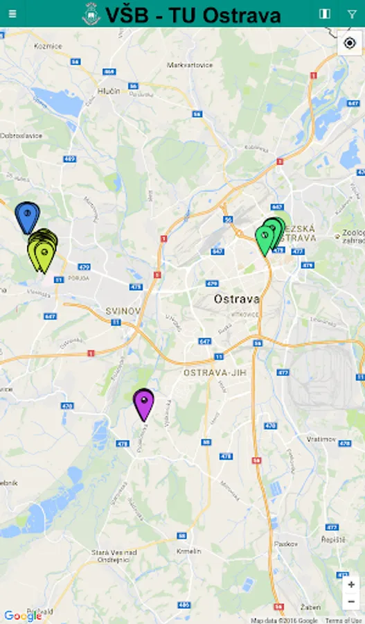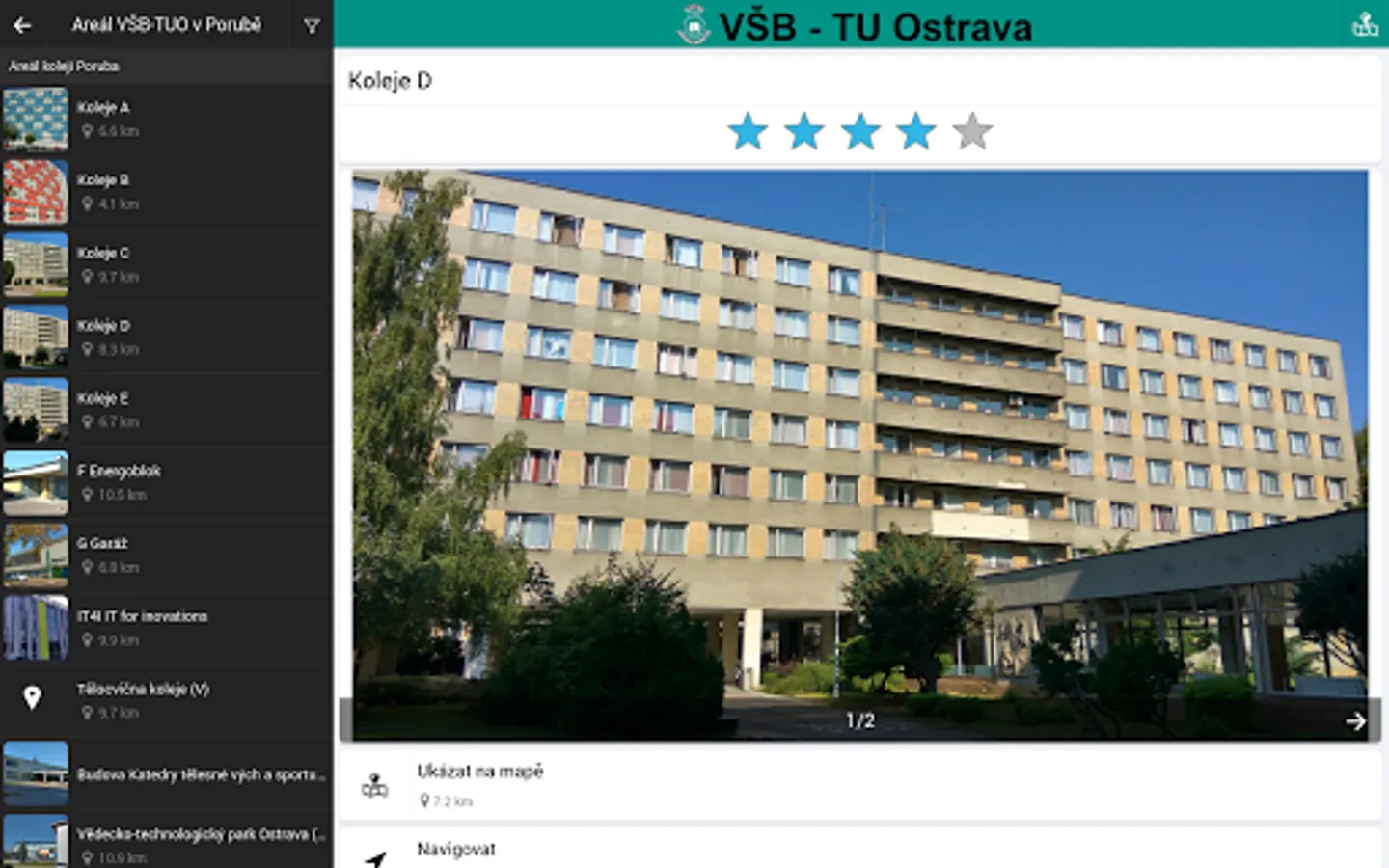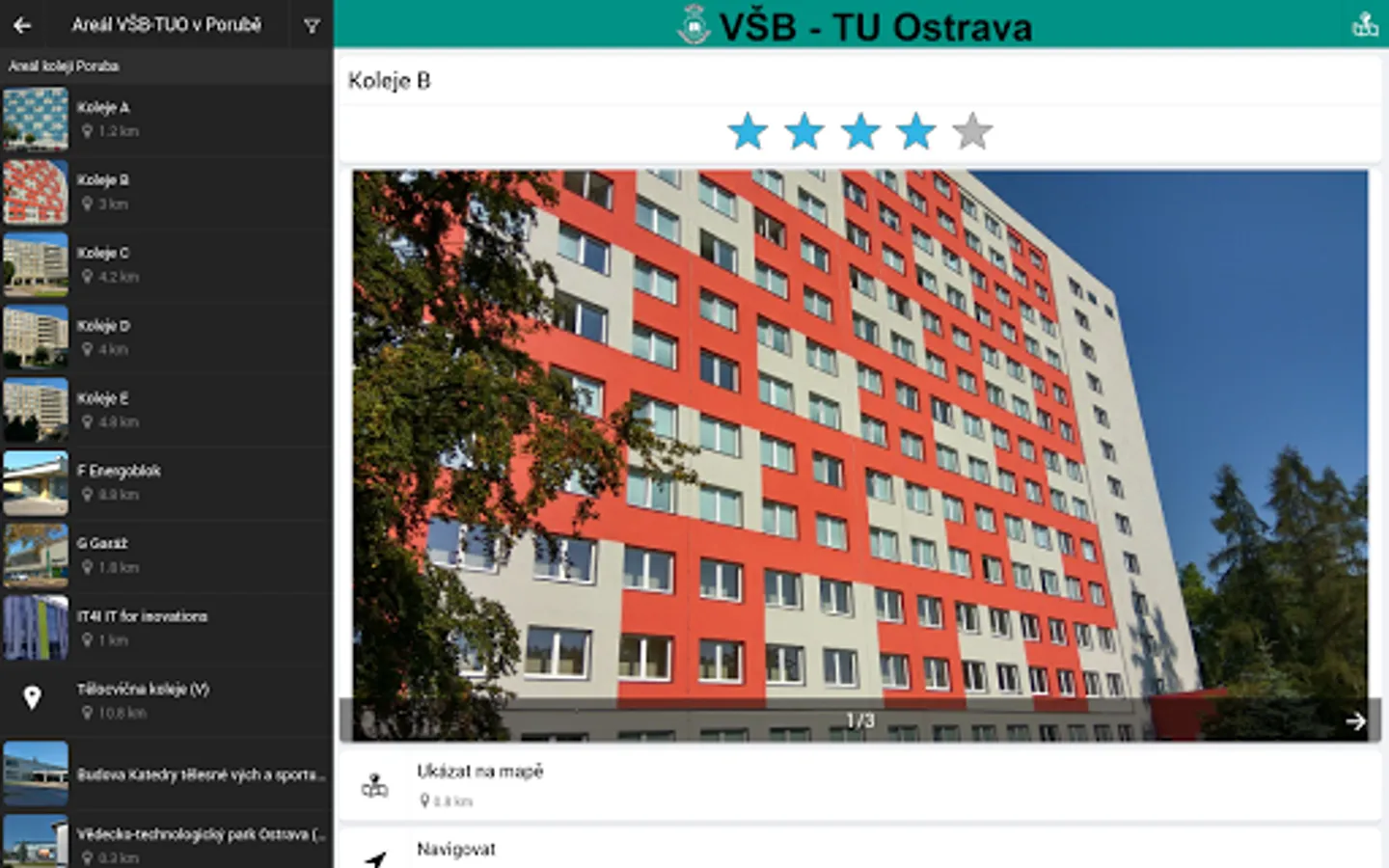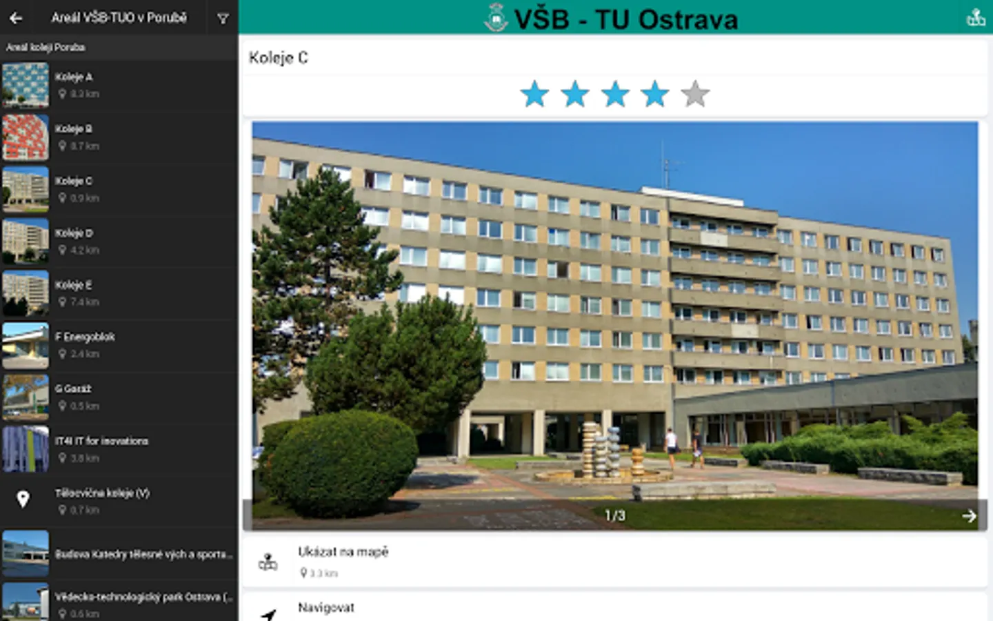 Mobile Guide of VŠB - Technical University of Ostrava serves to provide guidance in the campus of VŠB - Technical University of Ostrava. In the form of map provides basic information about the layout of buildings within the university and allows navigation to the selected object.