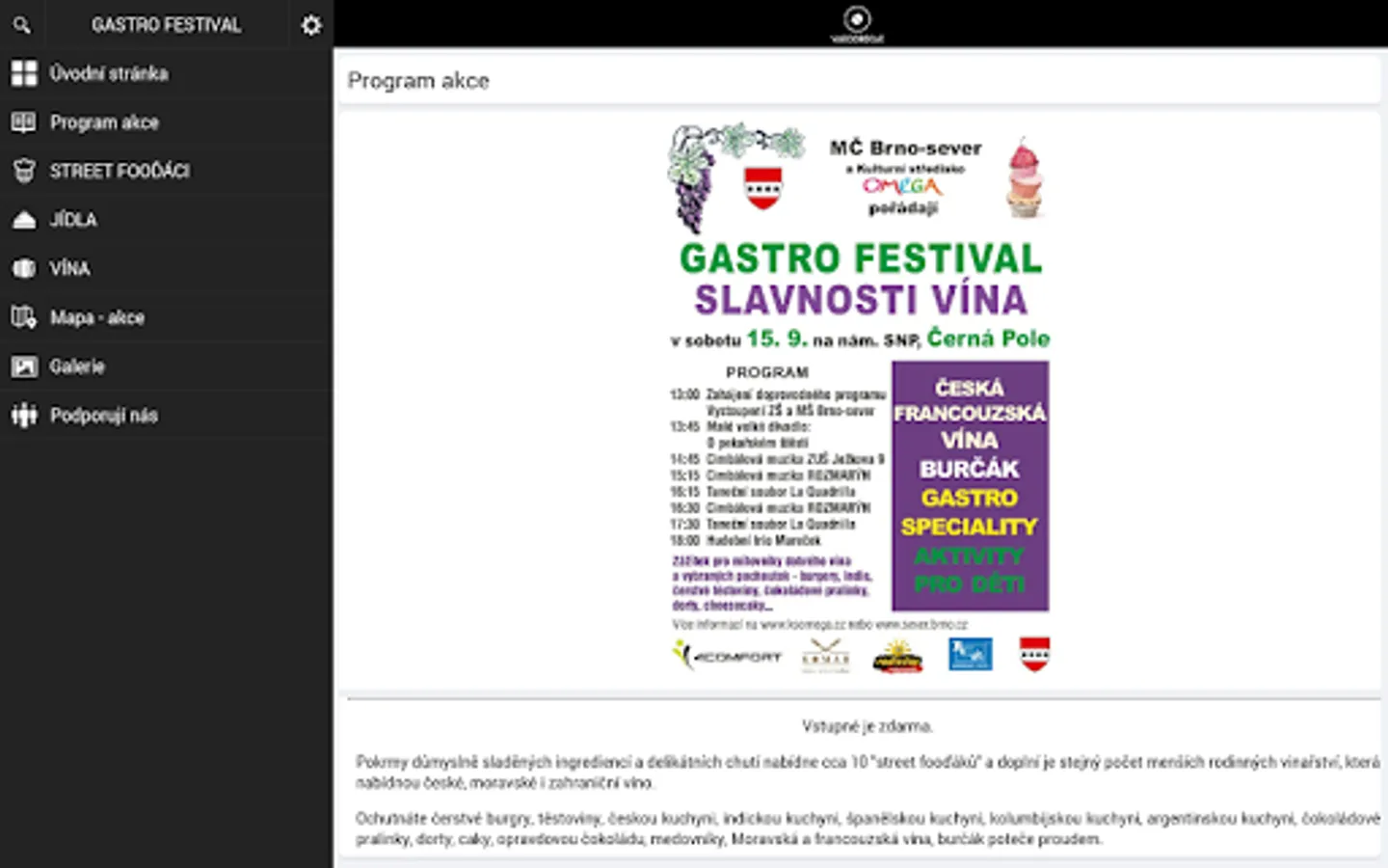 The application is intended for visitors to the Gastrofestival in Brno. You will find information about the program and the participants of the festival.