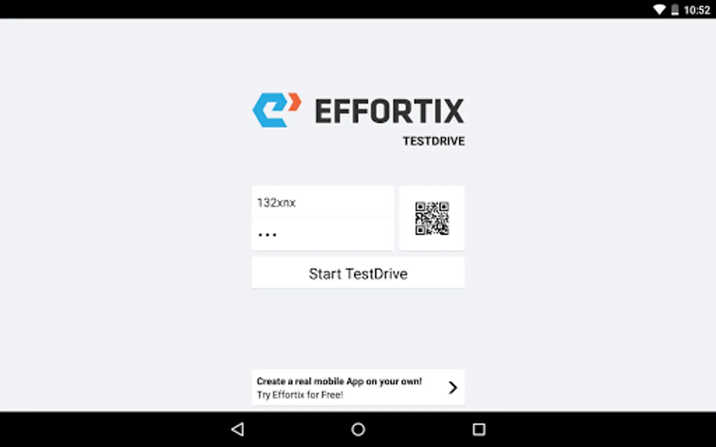 The Effortix TestDrive is here to allow you to try your mobile application on the real device before purchase. This application does not work without account in Effortix.