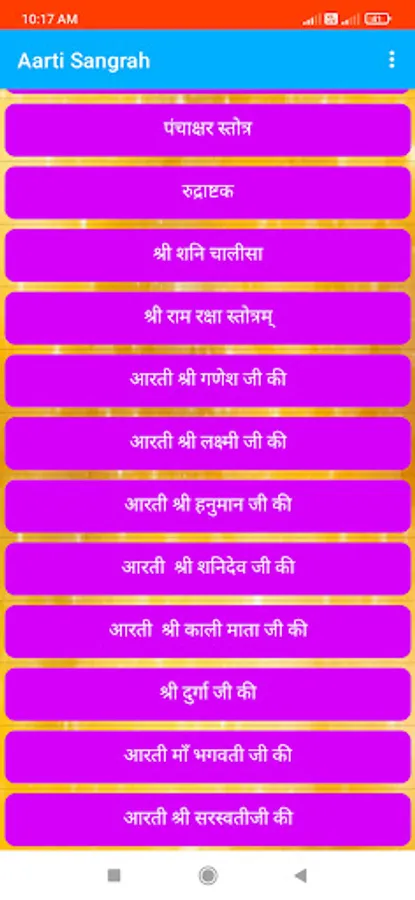 हिंदू देवी देवताओं की आरती का संग्रह ,निम्नलिखित आरतीयाँ एप में शामिल है