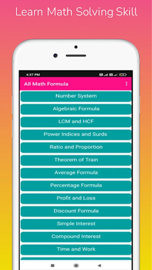 This All-Math formula app is the best for mathematics formula.This math formula app that covers each and every math formula topic like the Algebra formula, Geometry formula Trigonometry formula, Number system, Time work, Surface area, volume, and compound interest.It will help all students and faculty and those who are preparing for all job and competitive exam. This math formulas app is a very simple and easy to use . It has explain 1500+ mathematics formulas in one app.This app all math formula app is very useful for many Government exams like SSC CGL, CHSL, MTS NDA, BANK PO, BANK CLERK, JEE MAIN, JEE ADVANCED, Civil Court, FCI, and all State Engineering exams. This math formula app includes all shortcut tricks which are very useful for solving questions in a very short time.