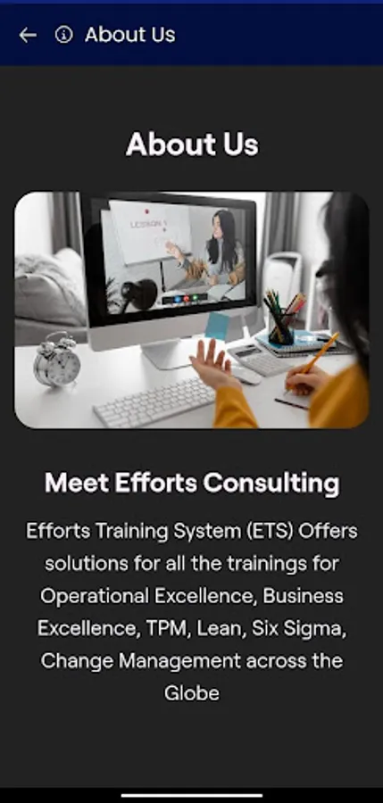 Efforts Consulting Training System Offers solutions for all the trainings for Operational Excellence, Business Excellence, TPM, Lean, Six Sigma, Change Management across the Globe.