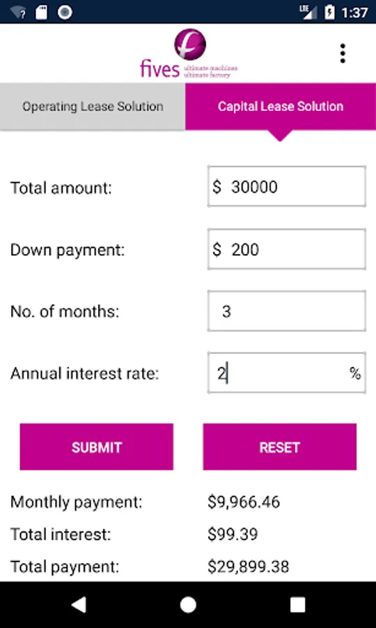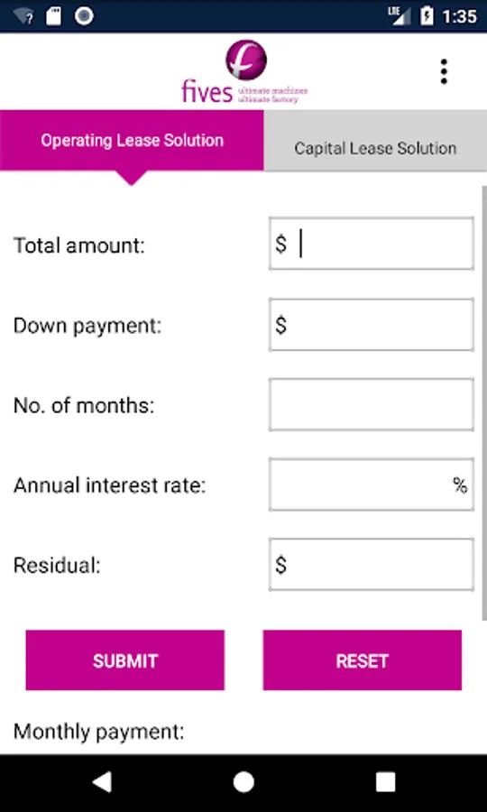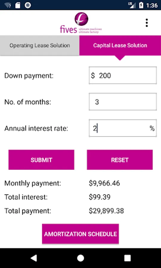 The Equipment Lease Calculator offers a quick and easy way to solve lease payments for either an Operating Lease / Rental or a Capital Lease / Loan structure with a term ranging from 1-360 months. Once calculated, simply view or email the amortization schedule to yourself or EFG for a Loan. You may also call EFG for advice.