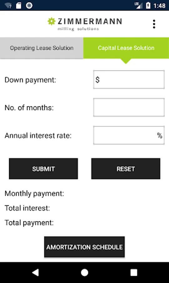 The Equipment Lease Calculator offers a quick and easy way to solve lease payments for either an Operating Lease / Rental or a Capital Lease / Loan structure with a term ranging from 1-360 months. Once calculated, simply view or email the amortization schedule to yourself or EFG for a Loan. You may also call EFG for advice.